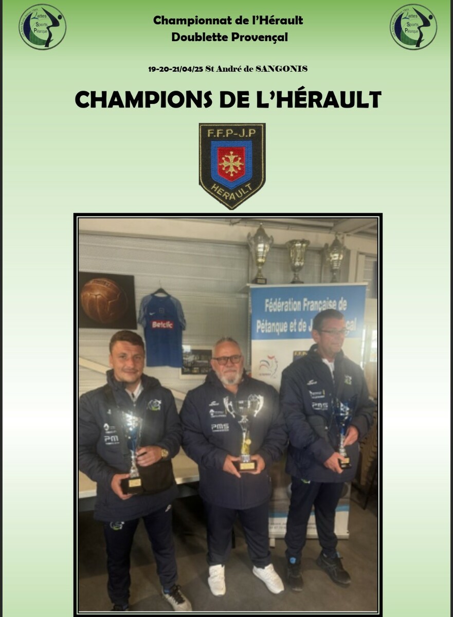 Cette année,Lattes est champion de l'Hérault doublette provencal !!,grace à nos deux magnifiques joueurs,Quentin ZYSKOWSI et Frédéric STIEVENART.